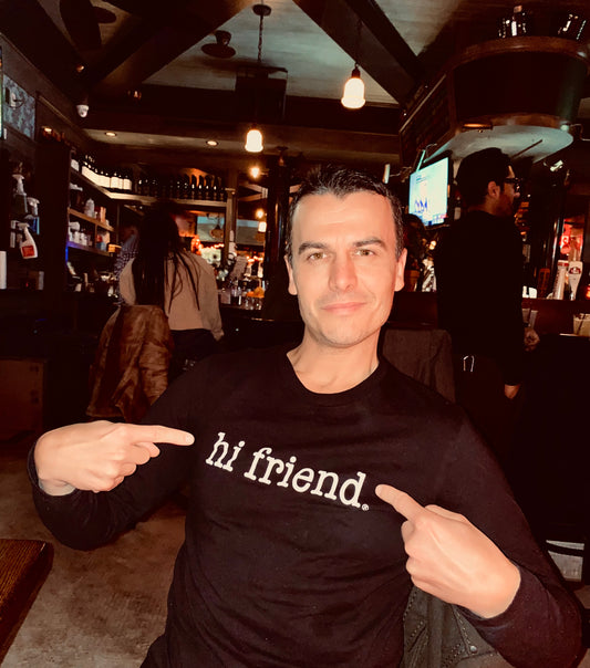 It all started back in 2003 - I was hanging out with a crew of friends, someone said 'hi friend', and it just stuck. From that point forward I've greeted everyone I encounter with a generous ‘hi friend!’, regardless if I know them or not. The more I said it, the more my friends urged me to trademark it, to which I scoffed…for what!?